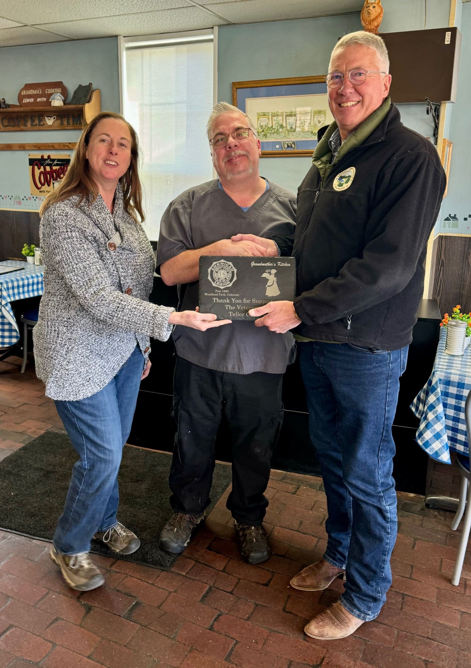 As always we never take for granted, and are deeply appreciative, of our local and small business owners who reach out and ask how they can support our Veteran Community. We encourage our Veteran Population and all Teller County residents to support our small and local business owners. A special thank you to Frank Connors for handcrafting these plaques. To Roy at Roy’s BBQ and Joe at Grandmas Kitchen - thank you for helping build and maintain a sense of community here and for always supporting the nearly 5000 Veterans that call Teller County home. To Aaron Degani, Genieca and Skyler at Walmart - a heartfelt thank you and we will be over to see you very soon.