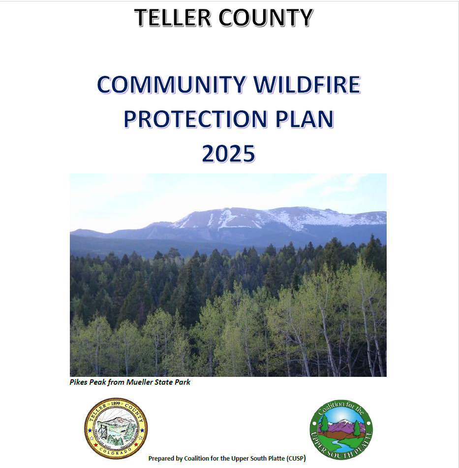 The CWPP evaluates wildfire risk, community preparedness, homeowner mitigation, wildfire awareness, and post-fire considerations across Teller County.