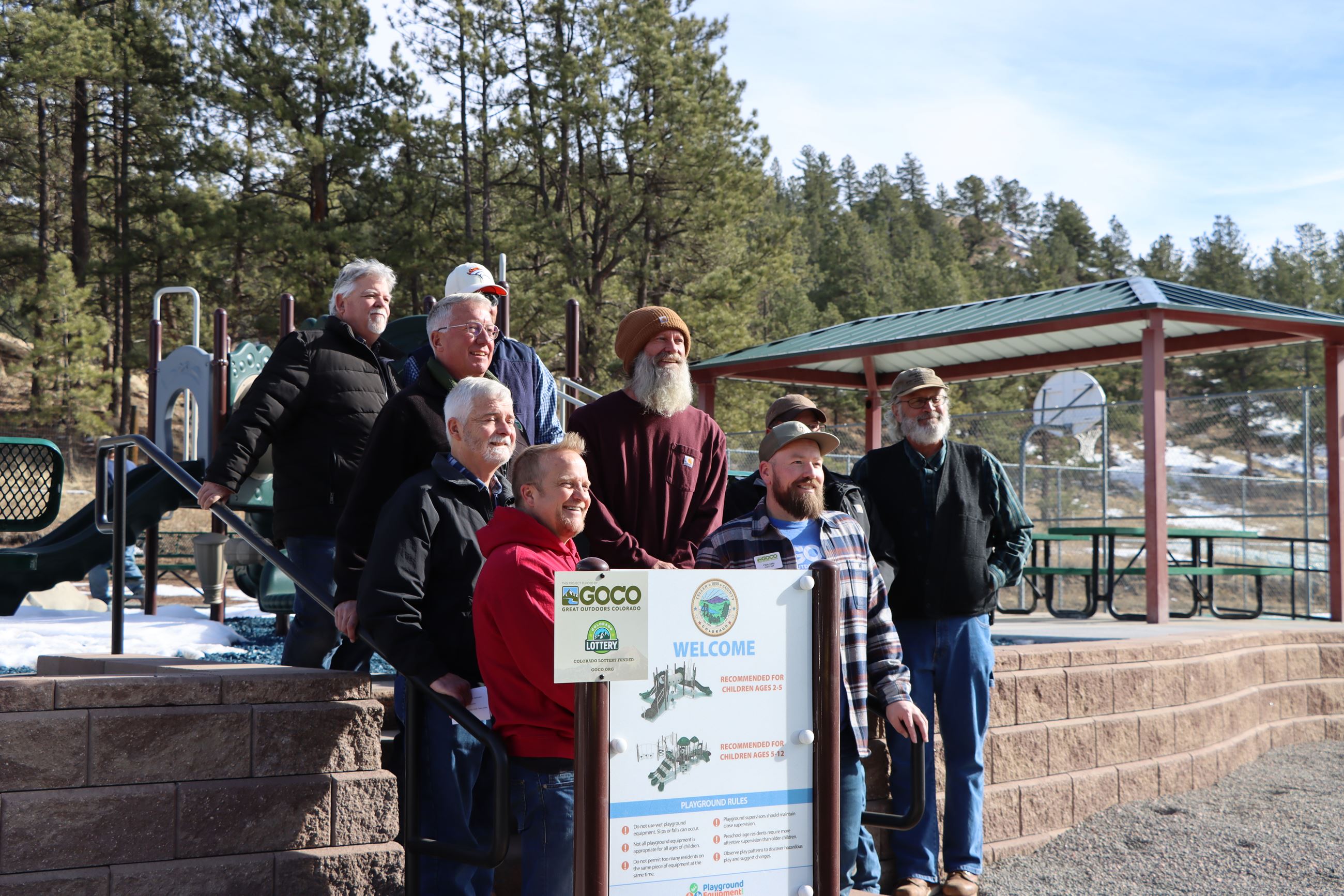 The County Commissioners, Great Outdoors Colorado, Mountain Explorers, PCI (our contractor), county staff, and many community members hosted a soft dedication of the newly remodeled and improved Florissant Park today. The official grand opening will occur next spring after the finishing touches are put on the parking area and a few other weather-restricted finishes, but the park is now available for use, and we also had the seal of approval from many of the children who showed up today for a test drive.